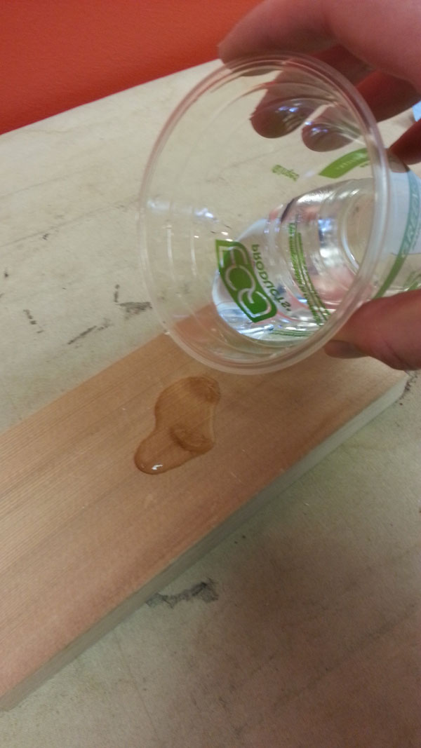 首先,先將水倒在凹痕處,不需要太多,只要能夠覆蓋住凹痕就行。