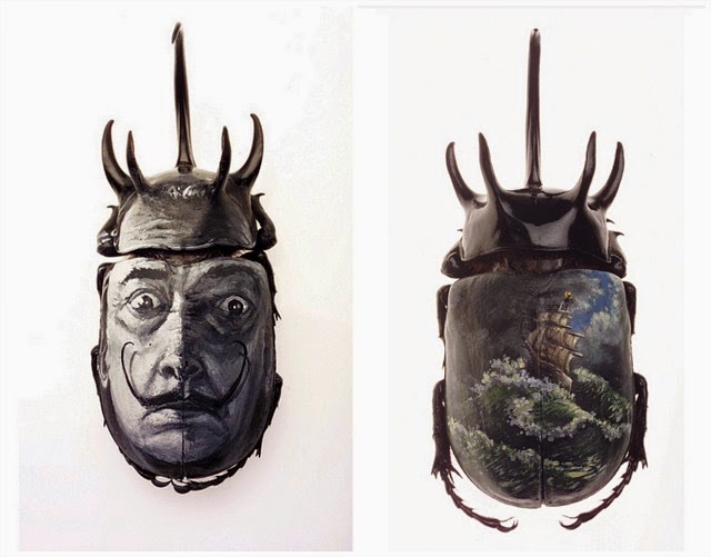 藝術家的創作素材總是五花八門、千奇百怪,就看靈感怎麼與他們的創作力撞擊在一起。兩位熱愛昆蟲的藝術家Chris Brand和Evan Skrederstu,十年前的某一天,兩人在洛杉磯河區創作壁畫時,不小心把藍色的染料噴灑在一隻小蟲子身上,當時,Skrederstu就想到,既然他們能在任何物品之上作畫,那為什麼不在蟲子上作畫呢?