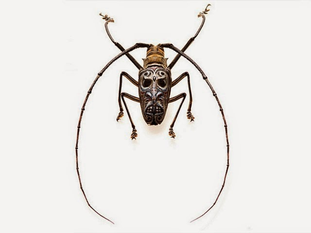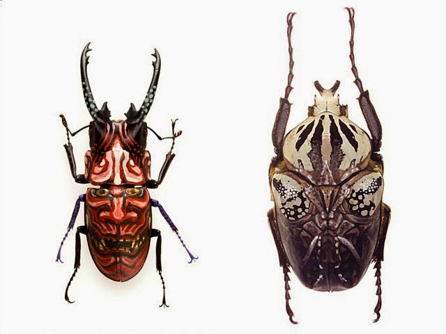 Skrederstu和Brand過去收藏了許多稀有昆蟲,剛好成了他們的最佳創作素材。想想看全世界有多少種昆蟲,以及牠們可以延伸出來的無限種可能性,真是驗證了藝術的無所不在與無所不能,雖然「蟲體」加上「面具臉譜」對許多人來說應該像惡夢雙重奏,實在不敢多看一眼吧^^"