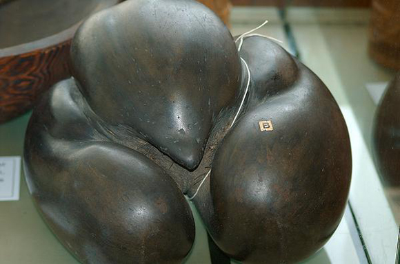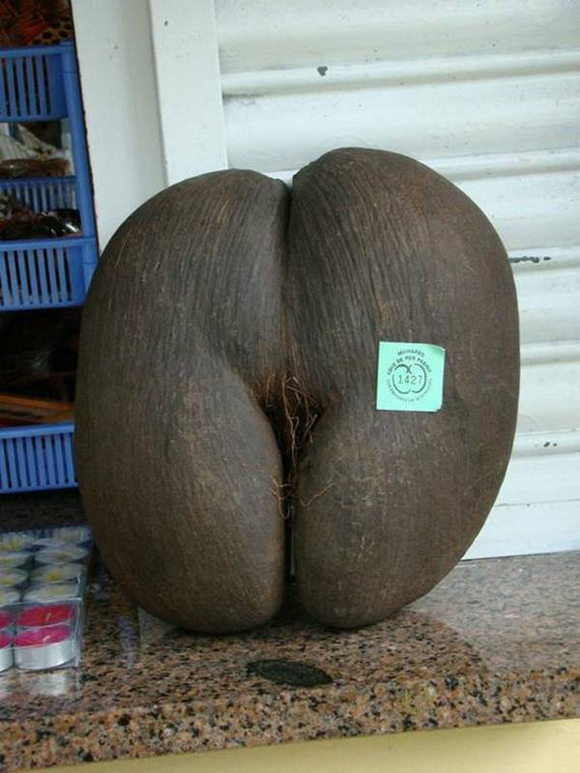 雌株則有著經過歲月風化而稍微粗糙的臀部外型,也因為這種特殊造型,才會讓海椰子除了有像Coco de Mer的浪漫法國名字外,還多了其他暱稱:Sea Coconut(就是海椰子的英文名)、Bum Seed(屁股種子?)、double coconut(雙椰子?)、coco fesse(美臀椰子)、Seychelles Nut(塞席爾堅果)。