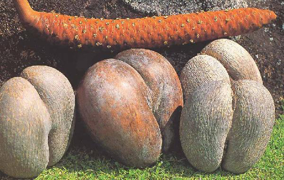 海椰子的果實生長速度很慢,大概要6~7年才會成熟,成熟後大概可以長到直徑約40~50公分大,15~30公斤重,果實裡也有著同樣尺寸驚人的種子,到目前為止,海椰子已經創下世界上最大果實(42公斤)、世界上最大種子(17.6公斤)和棕櫚樹界最大雌株的三大紀錄。