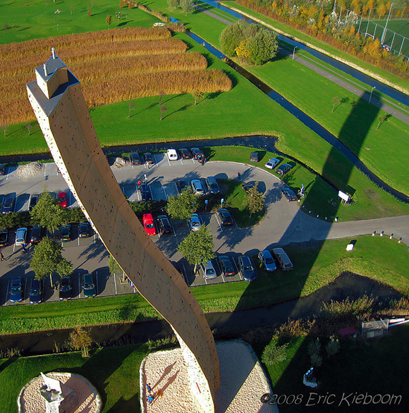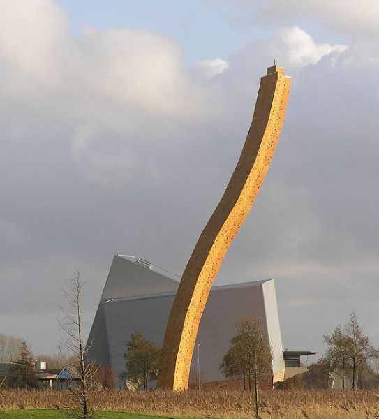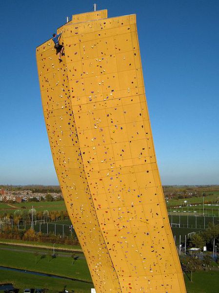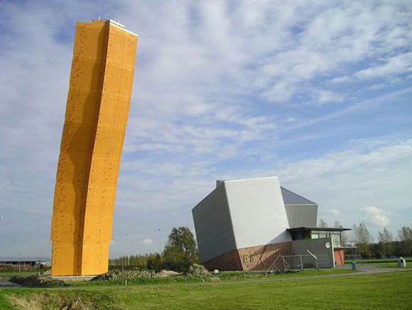 這座遠遠看起來像隻歪歪斜斜的大香蕉,其實是座位於荷蘭Groningen的人造攀岩牆,境內大多是平原沒有高山的荷蘭,想要攀岩的朋友只好往人工的攀岩場練習,這座高達37公尺的攀岩牆是由木頭與鋼材結構搭蓋起來,就像是一把在陸地上的王者之劍。