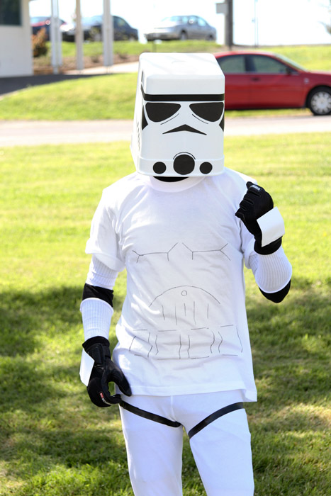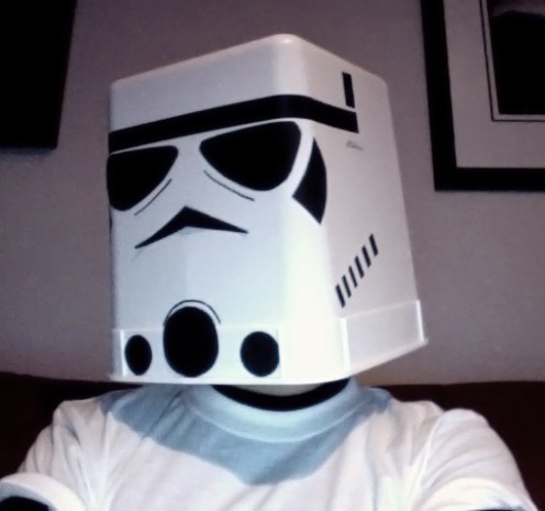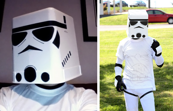 星際大戰裡殺不完的反派角色「帝國戰士Stormtrooper」的戲服,如果要去租一套至少也一兩千塊要吧,但是想要不花錢就能穿成帝國戰士,要怎麼辦呢?可以參考國外網友Jason Lau的創意啊~只要一個白色垃圾桶(強烈建議不要拿廁所裡的XD)、黑色膠帶跟雙面膠就可完成頭盔,身上衣服的部份就只要把你衣櫥裡的衛生衣、衛生褲來出來穿,就可以完成啦!