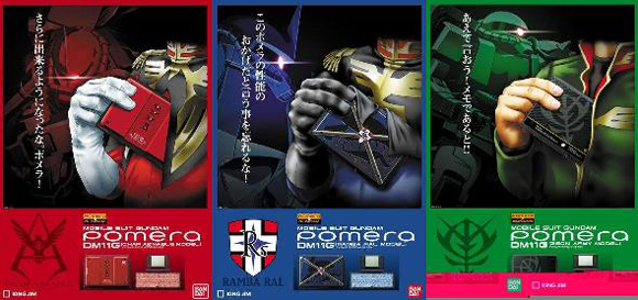 基本上這次Pomera推出的機型跟之前推出的沒有兩樣,不過多了鋼彈的加持(嚴格來說應該是吉翁魂XD),一口氣推出了包括紅色彗星夏亞、藍色巨星蘭巴拉爾和永遠的獨眼巨人薩克2的三款造型的Pomera數位筆記本。
