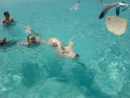 如果可以選擇的話,好像一般人都會比較想和美人魚游泳,不過既然有度假中心推出和豬游泳的行程,那......參加過的人,以後就可以笑別人吃過豬肉但沒和豬游泳過了(無誤)