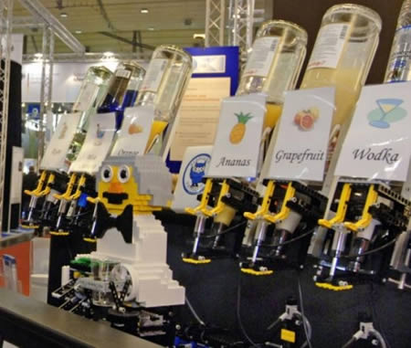 機械酒保的腦袋瓜總共裝滿一個資料庫的調酒成分和一個資料庫的笑話,所以客人點酒時,它不僅介紹得出酒來,也說得出笑話來,至於笑話好不好笑,客人捧不捧場,嗯......咱們其實還蠻好奇的說。