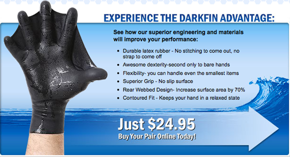 這雙名叫「DarkFin Gloves」的蹼手手套,在橡膠手套上加上了蹼,能更增加70%的表面面積,讓你花更少的力氣增加更多的滑水動能,輕量化的強化橡膠不會增加重量,不管是潛水、衝浪、游泳、跳傘等各種用途都可使用,重點是,DarkFin Gloves相當好清洗,只需要清水沖洗就可以囉!