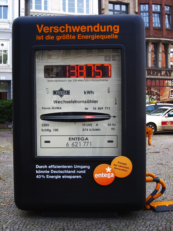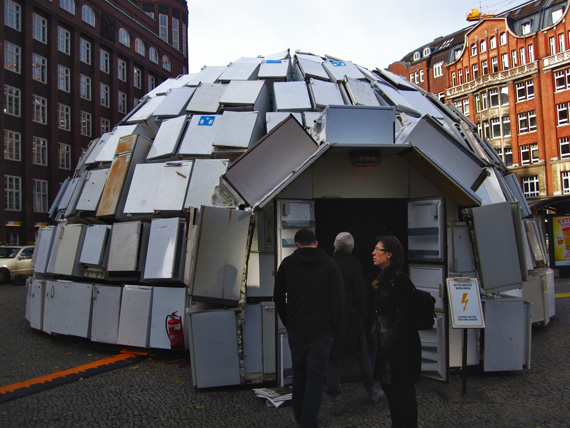 為了傳達自己的環保訴求,柏林藝術家Ralf Schmerberg真的找來322台廢棄冰箱,在德國漢堡街頭搭建了一座雪屋,並在上頭寫上了「浪費就是最大的資源(Wastefulness is the biggest source of Energy)」的標題,在雪屋的外頭他擺上了一台電子量表,可以顯示這些老冰箱所消耗的電力,Ralf Schmerberg說:「如果大家更有效率的使用能源,德國可以節省下高達40%的資源。」