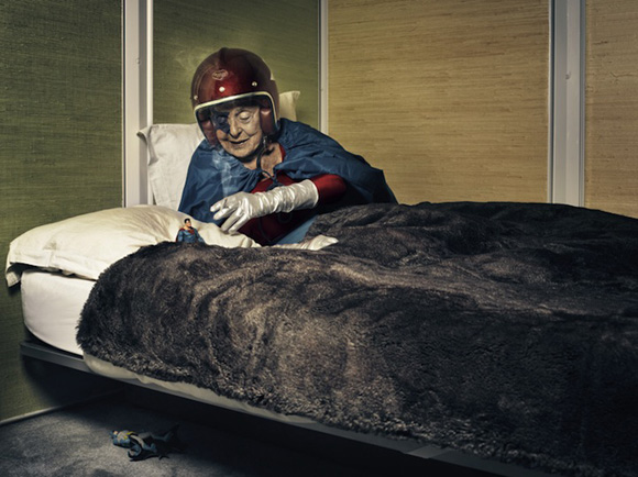 為了讓老阿嬤過過女超人的癮,攝影師孫子Sacha Goldberger特地去租來了女超人戲服讓老祖母穿上,雖然有點心不甘情不願,但是當老阿嬤一穿上女超人服之後,卻收不起臉上的笑容啊!越拍越上癮,一發不可收拾。