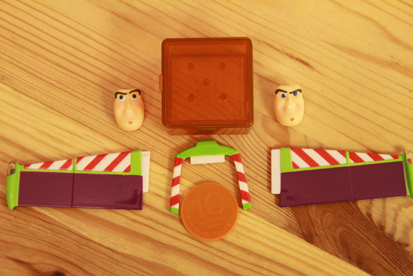 大家應該都知道,巴斯光年是來自於總部位於Gamma象限的銀河聯盟的太空騎警,所以身上有翅膀可以飛,也是很正常的事啊!這兩片飛天翅膀不用飛的時候,可以拔下來放在收納盒內,讓你忘記它的存在喔!對了,巴斯光年盒內同樣附有公仔集點幣跟「BUZZ LIGHTYEAR」名牌。