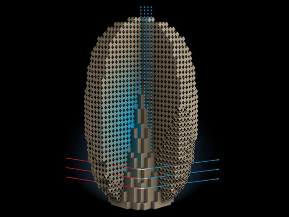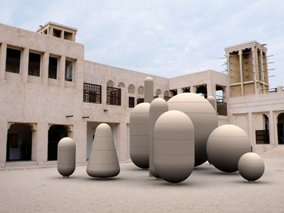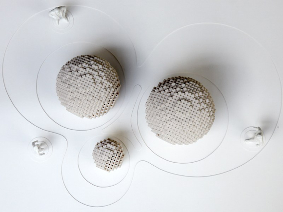 倫敦設計公司PostlerFerguson看了之後也有樣學樣,將一層層的沙,用含有鎂的附著劑,覆蓋在有以3D技術創造出來的伊斯蘭傳統格屏「masharabiya」上,當水流入蒸發後,冷空氣會從格屏中的孔孔散出,變成了完全不用電就能達到降溫效果的天然冷氣,即便隨便擺放在大樓廣場,或是普通的街角,也會是個十分吸睛的裝置藝術。