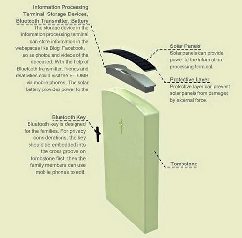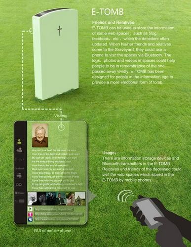 資訊爆炸的年代,什麼都要數位化,看來已經是勢不可擋的趨勢了,有鑑於此,相當有前瞻性的設計師們,便設計了這款「電子墓碑」(E-Tomb),假如先人地下有知的話,應該會忍不住讚嘆這偉大的發明吧!(誤)