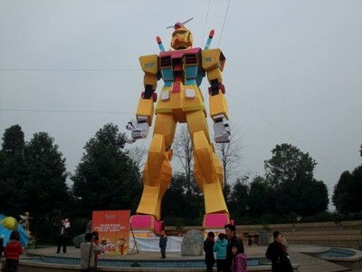 這幾天中國最大的科技消息,莫過於四川某遊樂園利用傳說中最強大的土炮技術,成功地製作出了一台1比1的自走人型泛用戰鬥兵器,也就是日本人管它叫做「鋼 彈」的玩意兒,據了解這尊「偽」鋼彈大佛,跟位於日本靜岡的「鋼彈大佛」本尊的相似度高達10%(沒錯~你沒眼花,我們也沒打錯),因為幾乎除了高度大小 差不多之外,實在沒有一個地方像的XD