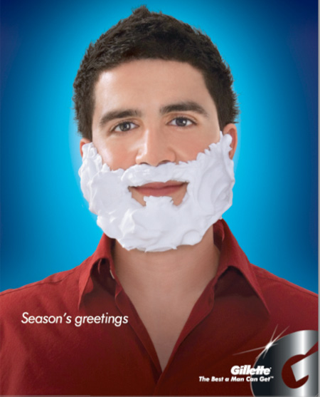吉列刮鬍泡找個男人把臉塗得像聖誕老公公就想了事嗎…好歹也來個有點衝擊性的像是聖誕老公以刮胸毛之類的。