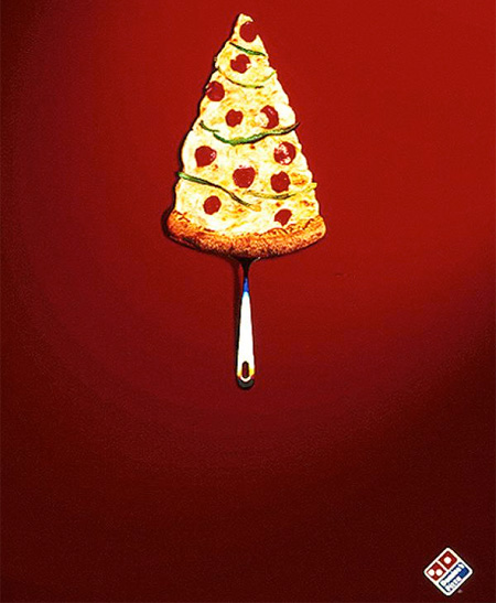 達美樂用一塊披薩呈現聖誕樹形象,這麼單薄的配料也只有聖誕節才敢推出來吧