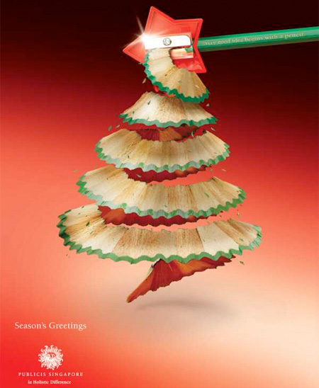 新加坡鉛筆公司用削鉛筆機和鉛筆搭配出來的聖誕樹,視覺感受非常舒服。