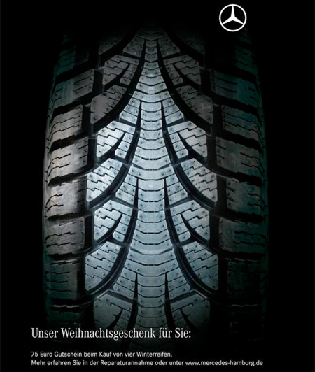 歐美國家聖誕節經常遇上暴風雪,一條安全的輪胎最重要了,賓士幫你選好輪胎七小時到家、選不好就要七天才到家了…