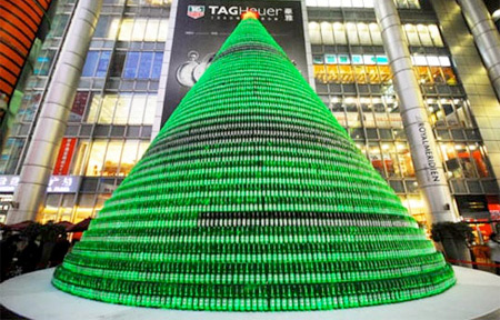 腰圍超大的海尼根樹,使用了1000瓶海尼根啤酒所堆疊而成的海尼根,Heine X'Mas!