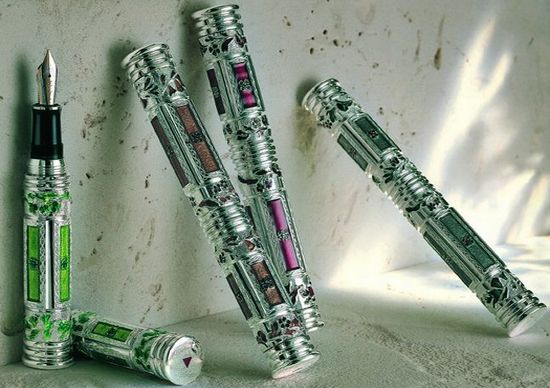 知名珠寶商Van Cleef & Arpels與萬寶龍在2006年2月聯手推出的Mystery Masterpiece,840顆鑽石及紅寶石、藍寶石、綠寶石在白金筆身上雕琢出奢華的象徵,要價美金七十三萬元。