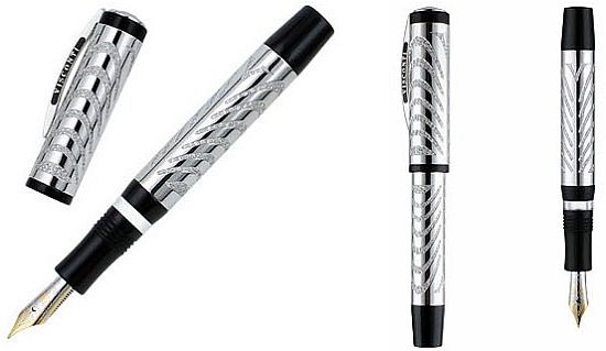 由Visconti所推出的Ripple HRH限量版鋼筆,不只筆尖是18K黃金,就連筆身也是18K的白金和鑽石,雙儲墨器的設計,一共有白金款和黑金款兩種,要價美金五萬七千元。