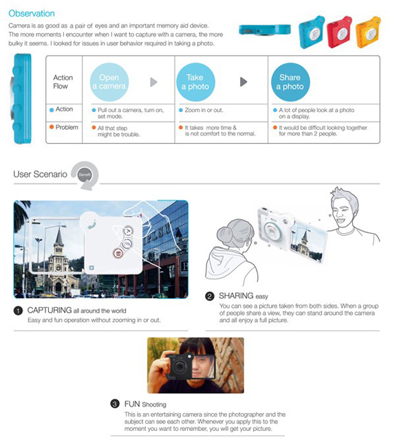 不過今天要介紹的這項概念性產品,倒算是現今相機界的一股清流(是說現在相機界有多污濁嗎?),設計師Dongyeon Kim設計了一款「所見即所得」的概念相機,光看圖片大家應該就可以知道這玩意是在幹嘛~基本上它的概念就是透過相機上面的觀景窗所看到的景物,拍下來之 後就是我們的照片,不但可以即時分享給好友觀看,而且絕對不會有誇大事實的事情發生,不過這項產品目前還在概念設計階段,距離量產也許還有一段時間要走, 而且就算真的生產,不知道沒有美肌模式,正妹們還會不會買單啊(誤)