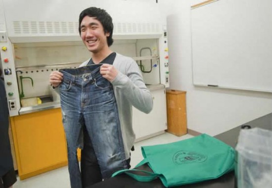加拿大阿拉伯塔大學(University of Alberta)的學生Josh Le便做了一個非常驚人的實驗,他從2009年9月起到2010年12月為止,每天都穿著同一件牛仔褲,而且完全沒有清洗過,原本他以為穿了15個月的牛仔褲應該會是細菌的最愛,但經檢測證明,牛仔褲上頭的細菌含量和他清洗後只穿2個禮拜的的含菌量差不多,大部分都位於胯部,也就是說,其實平時根本就不需要動不動就洗牛仔褲,反正15個月洗一次和2個禮拜洗一次的骯髒程度都差不多,換個角度想,如果每洗一件衣服的用水、用電量,最終將把地球推入毀滅的盡頭,那麼多穿牛仔褲,或許能為地球多延長下幾分鐘的壽命。