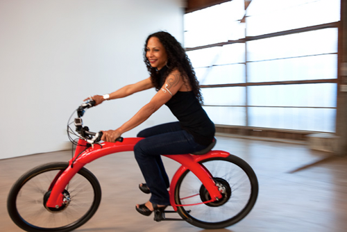 光是看到這個拱型的車架造型,就讓大人物眼睛亮了起來!哪裡找來這麼有型又極具設計感的腳踏車啊?!而且重點是,它居然還是電動腳踏車喔!對於大人物這種騎車只有三分鐘熱度的傢伙,更是再適合也不過啦!(笑)