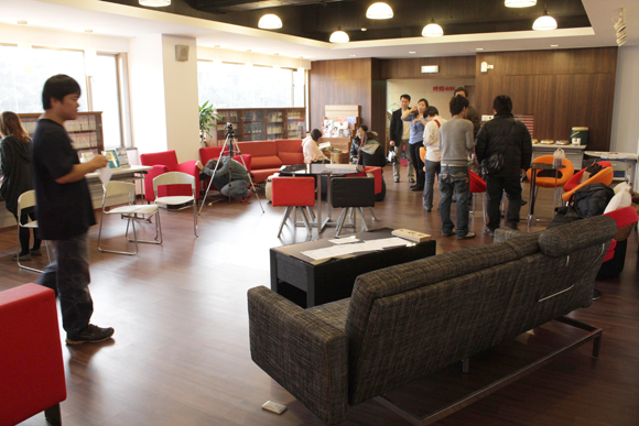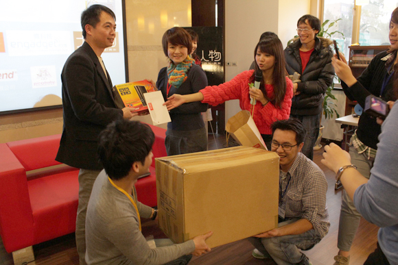 當天活動是兩點半開始,但是大人物跟癮科技的同事們,大約一點左右就到了現場Setting,大家手忙腳亂地將活動座位與大人物帶來的設計商品準備就緒,由於這次大人物網聚是跟時報出版的「不要的3C搞怪手創PK大賽」共同合辦,所以活動現場是選在萬華時報出版大樓頗有咖啡廳感覺的Lounge裡,看得出現場燈光跟空間都十分舒適!