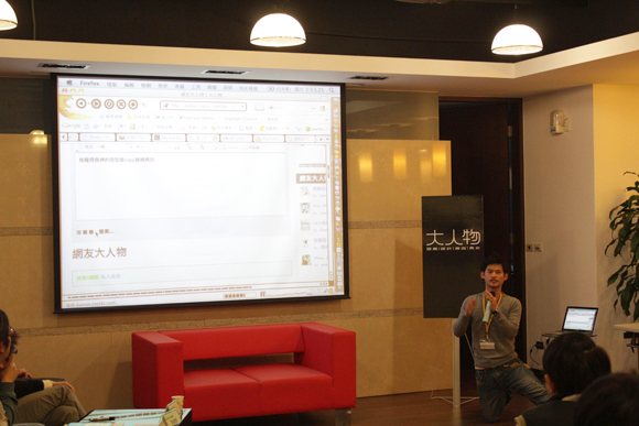 再來就是大家最期待的「大人物踹共時間」啦!呃...是大人物網聚時間啦,首先由麥克跟勞倫斯以PowerPoint跟大家詳細介紹「大人物網站」的來龍去脈,以及我們未來的網站規劃,在發現現場網友們都漸漸安詳地睡去之後XD,只好使出殺手鐧開放Q&A問答,親自下場抓現場網友來聊聊,也讓我們能直接知道大人物網友們的心聲!