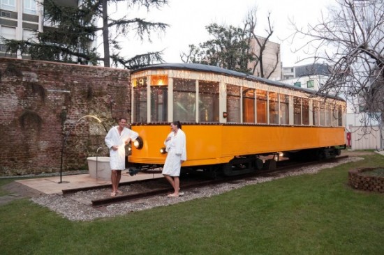 義大利公營運輸公司的QC Termemilano就想把旗下的單軌電車改裝成全世界第一間火車桑拿室,桑拿室中有熱碳、有木板凳、有觀景窗,當然還有最放鬆自在的氛圍,和平時上下班尖峰時間得縮小腹夾屁股才能擠進車廂內的景象,完全不同!