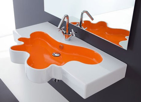 充滿色彩的洗手檯,當水往下碰到檯子時就會飛濺出去。而這檯子也依照這樣的想法去製作,十分具有創意!