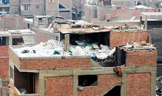 照片中這座位於開羅附近的垃圾城,多年以來,一直負責處理來自開羅的垃圾及廢棄物,當地居民札巴林人(Zabbaleen)靠著收集、分類、再利用、買賣垃圾維生,他們將廚餘拿去餵豬,剩下的能回收的就回收,能燒的就燒,能賣錢的就賣錢,能再利用的就再利用,長久下來,發展出一套效率極高的垃圾處理方式(根據筆者讀到的資料,札巴林人的垃圾回收率高達80%,應該為全球之冠吧!),卻也可以想見,只依靠資源回收作為收入的他們,經濟狀況有多糟。