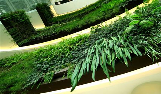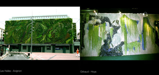Patrick Blanc的綠色花園由一層PVC層、毛氈層及金屬框組成,金屬框架垂直掛在牆上,連同植物每平方公尺不會超過30公斤,再利用埋藏在支架上的管線餵養水分和養分,創造出不需要土壤也能自給自足的自然花園,不只適合室外環境,即便在室內,只要安排好人工燈光,一樣也能養出綠意盎然的垂直花園。