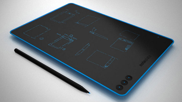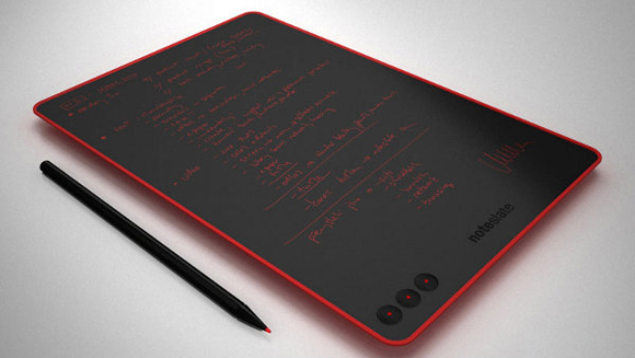 「NoteSlate」其實是個使用電子墨水的黑色手寫板,使用者拿起特殊的觸碰筆,就可以在上頭直接寫筆記、畫表格,列清單,沒有複雜的操作介面,反正想到什麼,就寫什麼,任何從腦中一閃而過的想法都能馬上紀錄上去,而且電池充一次電就可以維持180個小時,遇到靈感偷跑出去玩時,電力絕對夠撐到你把它們找回來,寫完之後,可以直接存在手寫板中,或是透過USB將資料轉到電腦中,未來NoteSlate還計畫使用太陽能面板,更讓人有充分的時間和靈感慢慢培養感情。