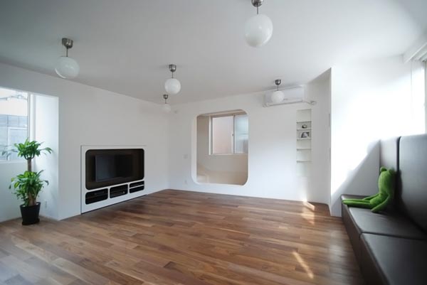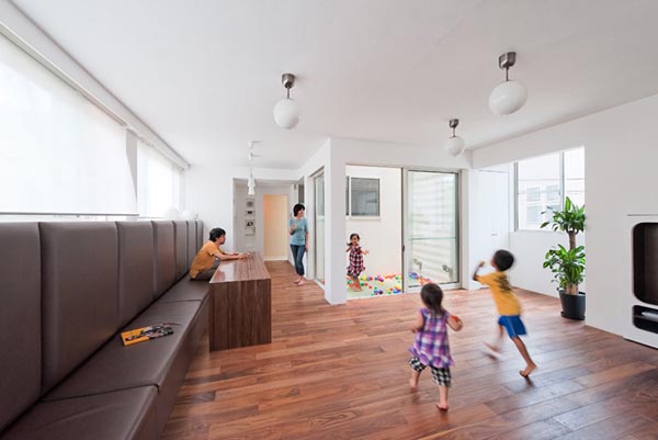 位於中央的起居室連接著許多出口,要從樓梯進還是從溜滑梯出,或是從溜滑梯進從樓梯出,都非常方便,或許因為是專為孩子設計的屋子,所以建築師非常強調自然採光以及空間的寬敞,從天窗湧入的光線,穿過了玻璃拉門,照亮了大半間屋子,來到寬敞的遊戲房,孩子們從溜滑梯一溜而下,順著下滑的重力加速度,盡情奔跑,一點都不用擔心會被絆倒。