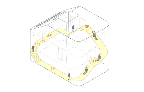 由Level Architects出品的三層樓住家「House with Slide」,建築師Kazuki Nakamura及Kenichi Izuhara便將遊樂場的溜滑梯搬到家中,和樓梯團團圍住整棟房子,讓穿梭在不同樓層間的居家生活,變得更富趣味。