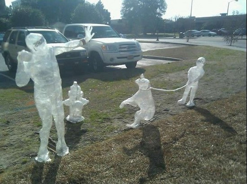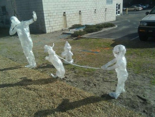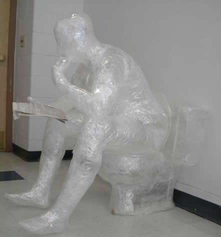 要設把這一尊放在家裡的廁所裡,應該訪客會嚇到奪門而出。這老兄如果不是用膠帶做成的,肯定是便秘到全身的僵化了...