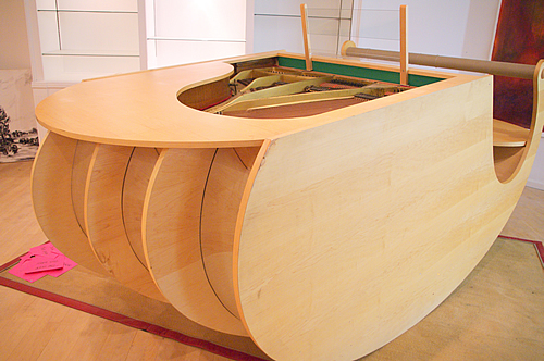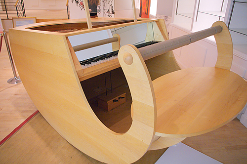 其實這款「搖籃鋼琴(Chichi the rocking piano)」是從三歲就開始彈琴的Sarah Davenport的創意,是世界第一張搖籃式的鋼琴,概念是將鋼琴師與鋼琴之間的關係,以搖籃形式連接起來,創造出一種完美的和諧,讓琴師在上頭揮灑他 的琴藝啊!