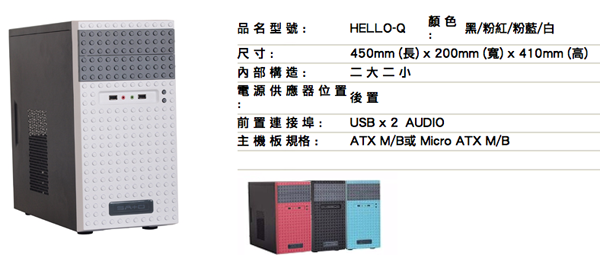 這款Coobeeo PC機殼是由台灣廠商旭皇科技所設計,從他們官網上面得到的資料並不多,只知道是叫做「HELLO.Q 」的彩色機殼,共有黑、白、粉紅、粉藍等四色,最大的特色是上頭外殼是採用類似樂高磚塊的材質,你可以自行揮灑創意,用樂高磚塊排列拼貼出你想要的圖案來,讓原本硬梆梆的PC機殼瞬間變成了無敵可愛的大玩具喔!