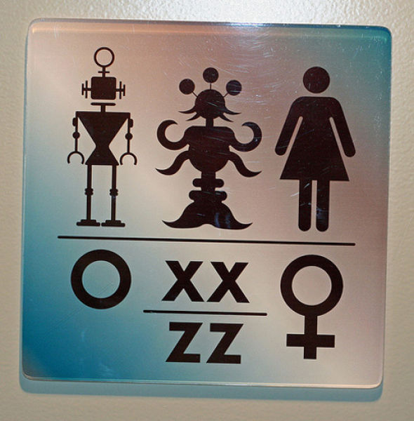 不過有些地方也相當貼心(?)地針對男女之外,同樣也有生理需求的人,加以標注,如小嬰兒、寵物,甚至是外星人(驚)來加以劃分如廁的範圍。