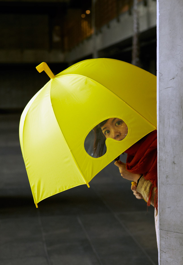 不知道你有沒有這樣的經驗,下大雨的天氣要撐著傘走路,常常三不五時就會因為視線不佳,而撞到各種障礙物,真的是很苦惱啊!但是這把好古錐的「潛水傘」在上頭大剌剌的開了兩顆潛望鏡,堅固的傘骨構成全罩式的傘面曲度,讓你不管風吹雨打都能夠「安心上路」,同時也兼具隱密性喔!