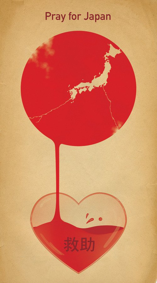 除了漫畫家之外,全球許多的設計師也用簡潔的海報設計,一起幫受創的日本加油,這一系列的「Pray for Japan」海報,也讓我們感受到全球人類希望災難不再共同的心願。