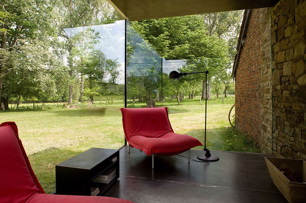 許多舊屋翻新的案例都是從屋子原有的結構著手,完工之後,幾乎看不出屋子的原貌,然而也有些以房屋的舊有結構作為新的出發點,像是比利時的The Roly House,原本是冷冰冰的石造車庫,改裝之後,設計師保留了石頭外牆,室內以搶眼的紅色坐椅作為吸睛重點,並在屋後添了新的溫室,二樓擺放著舒適的白色雙人床,變成了供旅人休憩放鬆用的B&B。