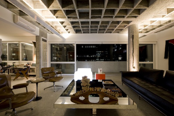 提到巴西的當代建築師,許多人會想到Oscar Niemeyer、Abelardo De Souza等大師級的人物,然而即便是大師的作品,依舊會隨著時間而衰敗頹廢,像是這間Paulista Avenue Residence,前身便出自於Abelardo De Souza之手,之後由建築團隊Piratininga Arquitetos Associados重新裝修,同樣運用了Abelardo De Souza最喜歡的幾何式的蜂巢狀天花板及水泥樑柱,鋪上地磚及現代化家具,由於屋主是單身父子,因此特別將他們的臥房設在客廳的兩邊,兩人雖然同住一個屋簷下,卻仍能保有隱私,可說是專為單身男子量身打造的生活空間。