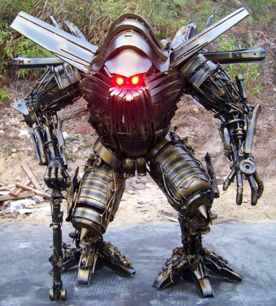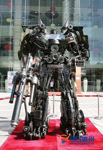 「變形金剛」第一、二集席捲全球瘋狂熱賣,據說將會在今年7月上映的變形金剛第三集(Transformers 3)也讓不少粉絲們引頸期待,但仍舊有些狂熱粉絲不耐久候,決定自己做幾仙變形金剛來過過癮,像是在中國惠州的變形金剛神人楊君林,就自己DIY用焊接方式蓋了好幾仙超威的變形金剛啊!實在是超給力這位老兄兒~(捲舌)