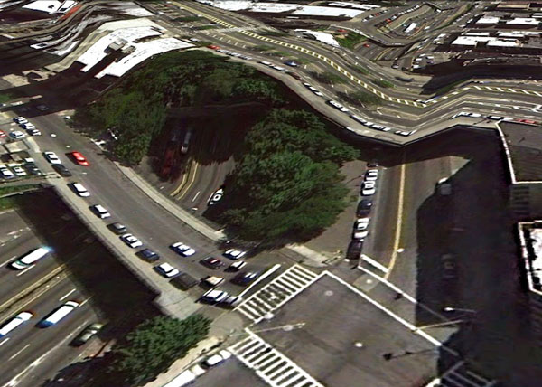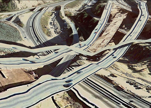 國外設計師Clement Valla Earth的時候,發現Google Earth模組中的3D建築物像是橋樑、公路等,因為是使用衛星拍攝的2D照片所拼貼,而形成了2D結合3D就有如「全面啟動」的奇幻景象。
