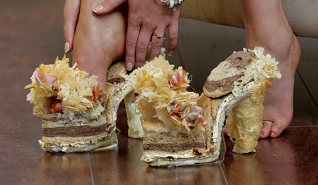 人家都說時尚本身是一種罪惡,但是對時尚界的人來說,全世界最邪惡的東西,明明就叫做甜點阿!一名來自英國巴斯泉大學 ( 亦稱巴斯思帕 Bath Spa University) 的學生 Lisa Dillion,利用英國西鄉農場切達乳酪 ( West Country cheddar ) 和麵包當作素材,製作了這雙令人瞠目結舌的高跟鞋,還取名叫做 Jimmy Cheese,擺明就是跟 Jimmy Choos 嗆聲 致敬來著呀!