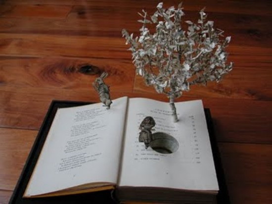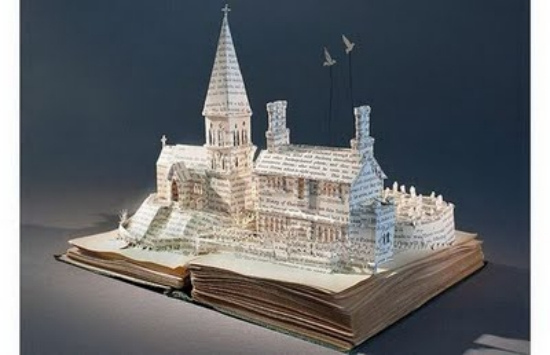 不說穿是不是會認為這本書長出了花朵,但其實這是紙雕創作出來的藝術品,每個細節都作的非常精細,故事中的莊園建築,用書本紙張雕刻表現出來也別有一番風味。幻想打開每頁後都有著一個故事象徵,真是浪漫啊。生活童話