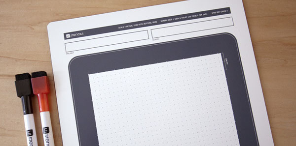 iPad手寫白板除了是手寫板之外,還內含了兩隻前端附擦頭的黑紅水性筆,將你靈機一動的絕妙靈感第一時間記錄下來,有時候最簡單的事物,就能完成最美好的回憶呀~心又癢了嗎?UI Stencils網站可以買,24.95美金一組有點小貴,但創意無價啊!
