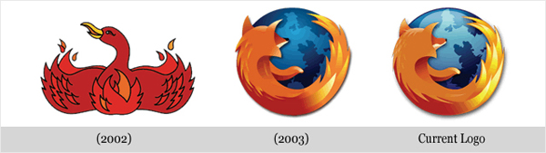 Dave Hyatt和Blake Ross所成立的這個資源開放的瀏覽器,原本叫做鳳凰(Phoenix),也因此logo長得就像隻浴火鳳凰。不過在2002年因為商標的問題,只好改為火鳥(Firebird),logo就繼續沿用……反正沒人知道真正的鳳凰跟火鳥長什麼樣子 XD。但很不幸的,火鳥這個名字也有人使用了,最後只好改為現今為人熟知的火狐(Firefox)。原本的logo無法再硬撐,於是請John Hicks在2003年設計了新的logo,火狐也成了今天最受歡迎的瀏覽器之一。